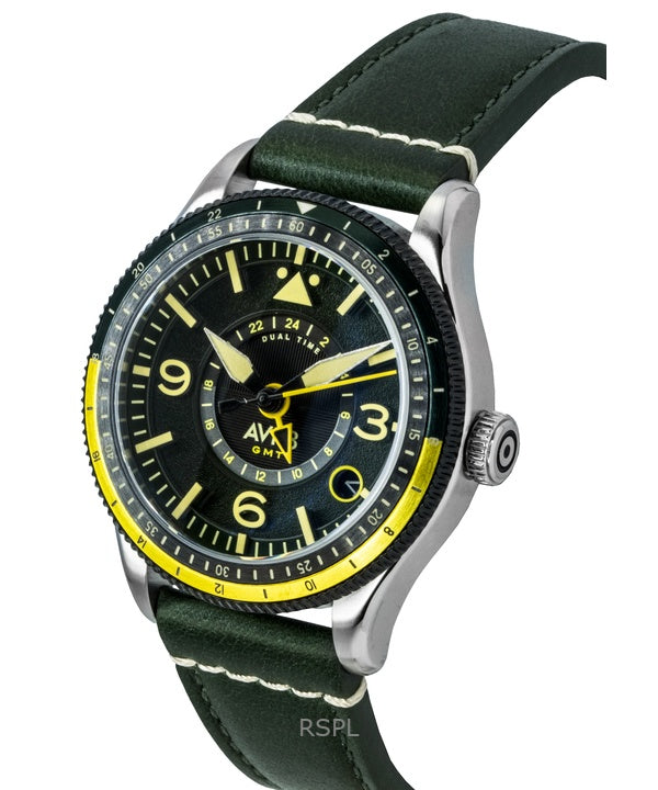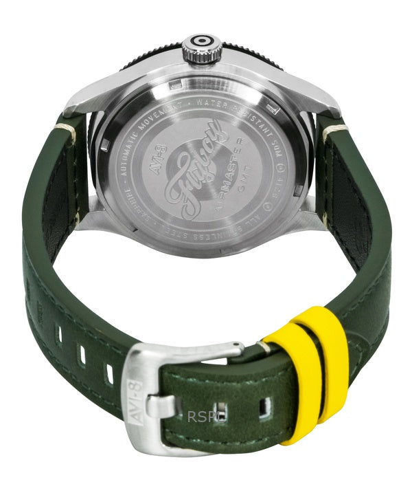 AVI-8 Flyboy Airmaster GMT Fuselage Green Leather Strap Green Dial Automatic AV-4128-03 Men's Watch