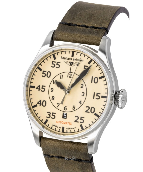 Bauhaus Aviation Leather Strap Beige Dial Automatic 27565 Men's Watch