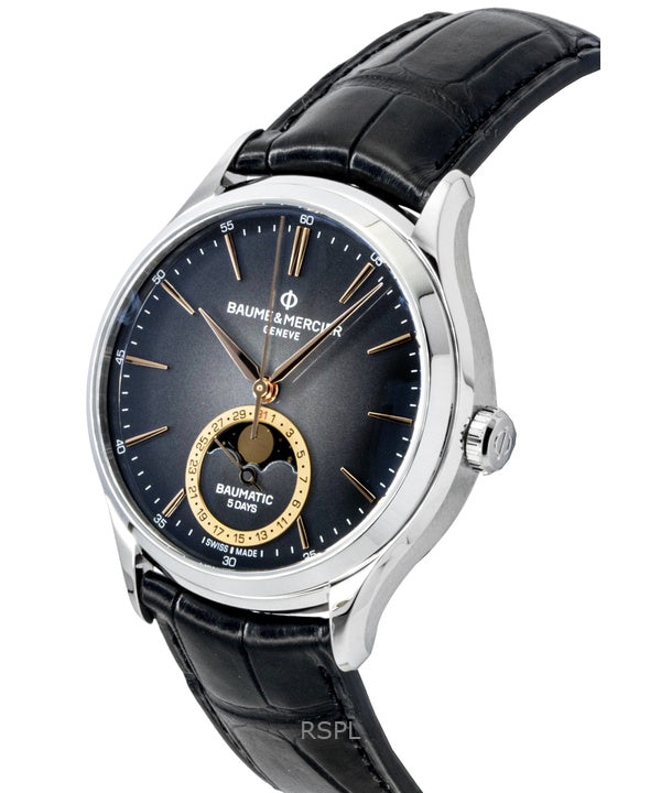 Baume & Mercier Clifton Leather Strap Moon phase Black Dial Automatic M0A10758 Men's Watch