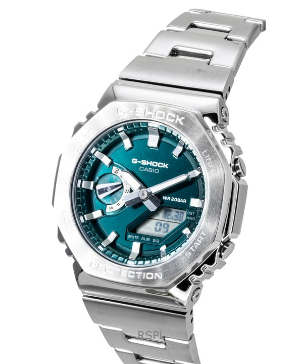 Casio G-Shock G-Steel Analog Digital Stainless Steel Green Dial Quartz GM-2110D-3A1 200M Men's Watch