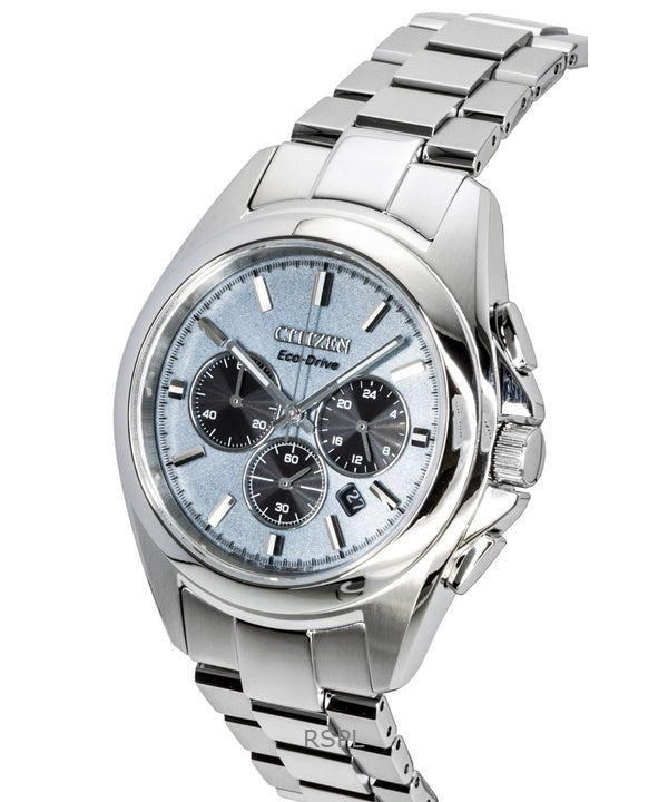 Citizen Sport Luxury Chronograph Stainless Steel Light Blue Dial Eco-Drive CA4680-55L 100M Men's Watch