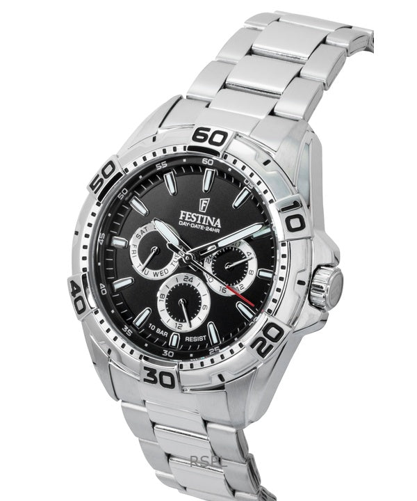 Festina Stainless Steel Multifunction Black Dial Quartz F20623-4 100M Men's Watch