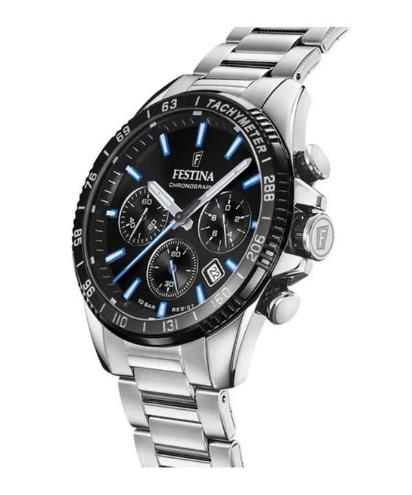 Festina Timeless Chronograph Stainless Steel Black Dial Quartz F20560-5 100M Mens Watch