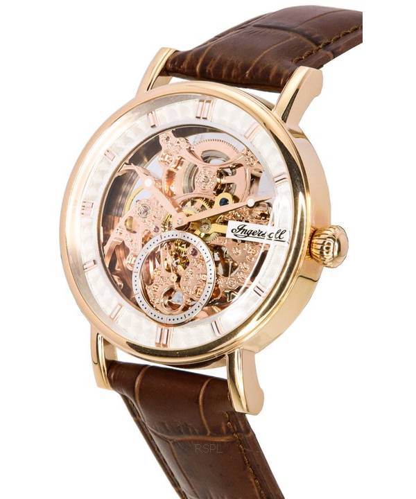 Ingersoll The Herald Leather Strap Rose Gold Skeleton Dial Automatic I00401B Men's Watch