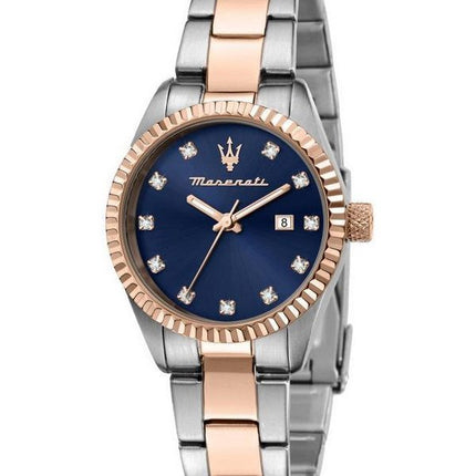 Maserati Competizione Crystal Accents Two Tone Stainless Steel Blue Dial Quartz R8853100507 100M Women's Watch