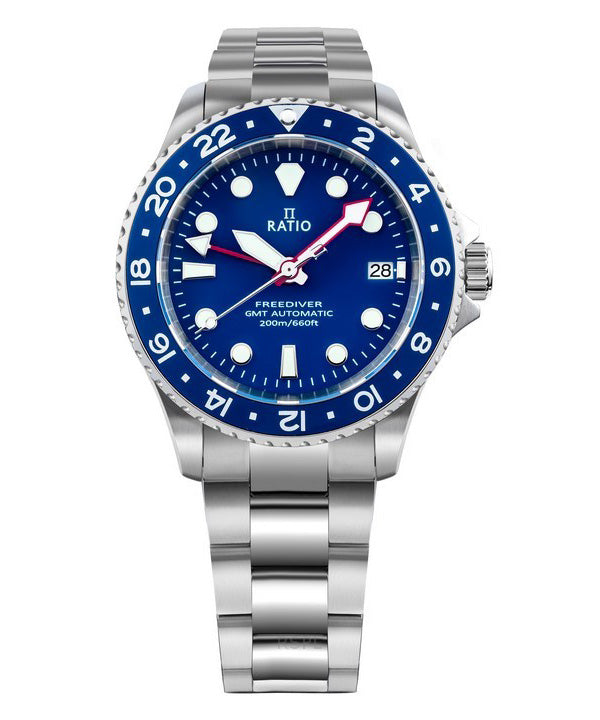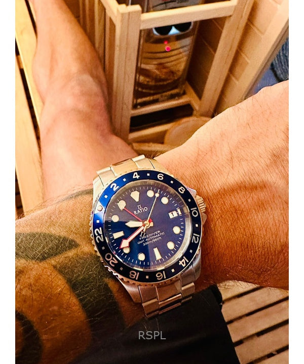 Ratio FreeDiver GMT Series Sapphire Stainless Steel Blue Dial Automatic RTF053 200M Men's Watch