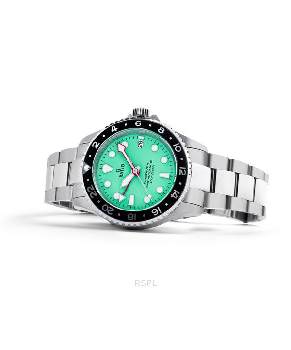 Ratio FreeDiver GMT Series Sapphire Stainless Steel Green Dial Automatic RTF059 200M Men's Watch
