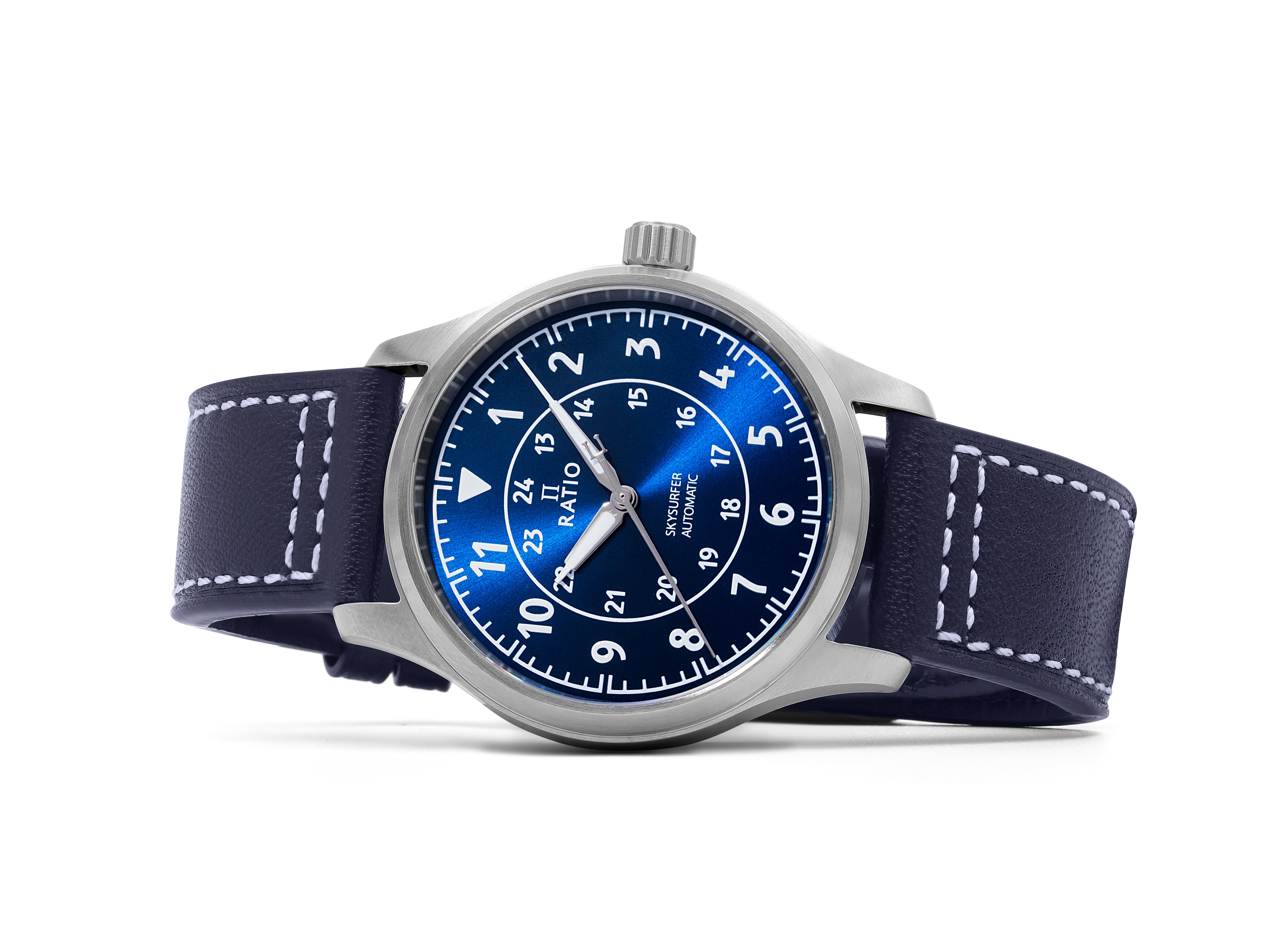 Ratio Skysurfer Pilot Blue Sunray Dial Leather Automatic RTS309 200M Mens Watch