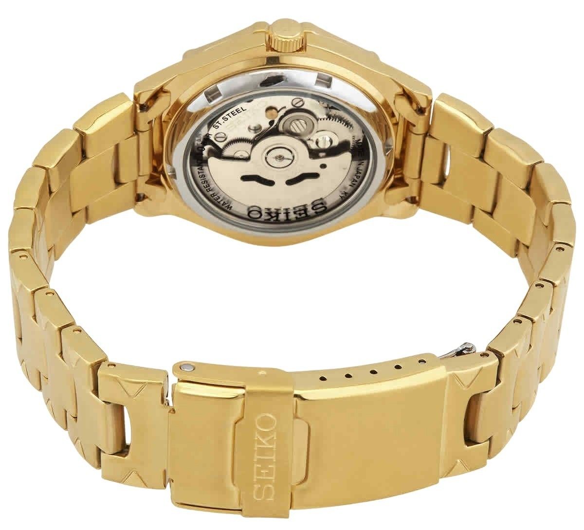 Refurbished Seiko 5 Sports Gold Tone Stainless Steel Gold Dial Automatic SNZ450J1 100M Men's Watch