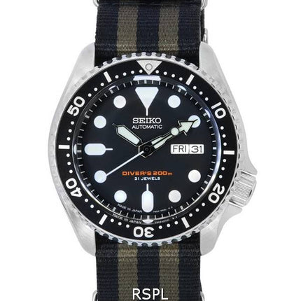 Seiko Black Dial Automatic Diver's SKX007J1-var-NATO21 200M Men's Watch