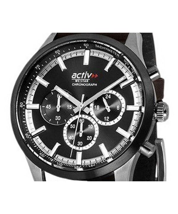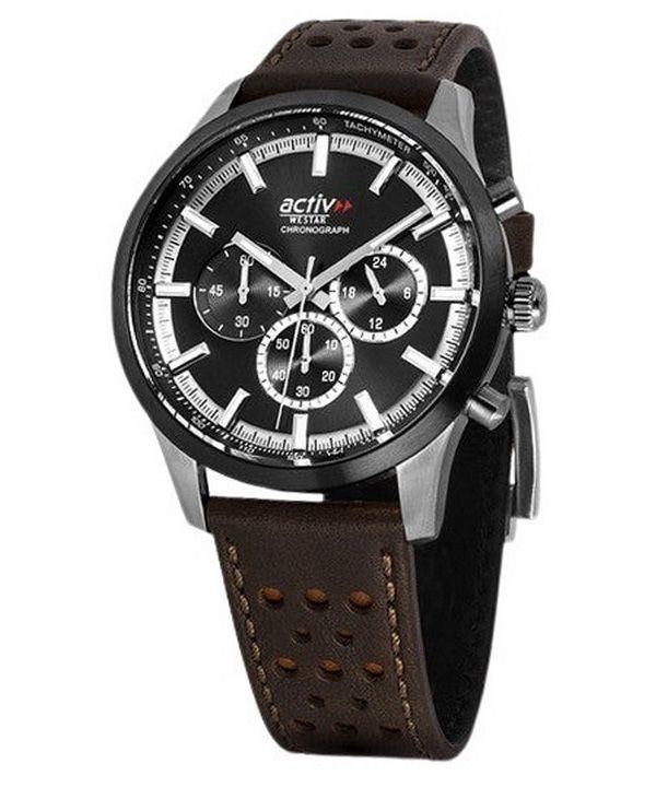 Westar Activ Chronograph Leather Strap Black Dial Quartz 90265SBN123 Men's Watch