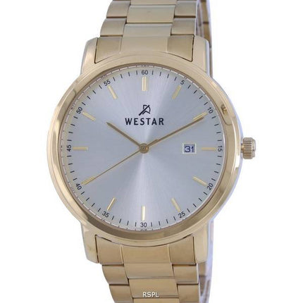 Westar Silver Dial Gold Tone Stainless Steel Quartz 50243 GPN 102 Mens Watch