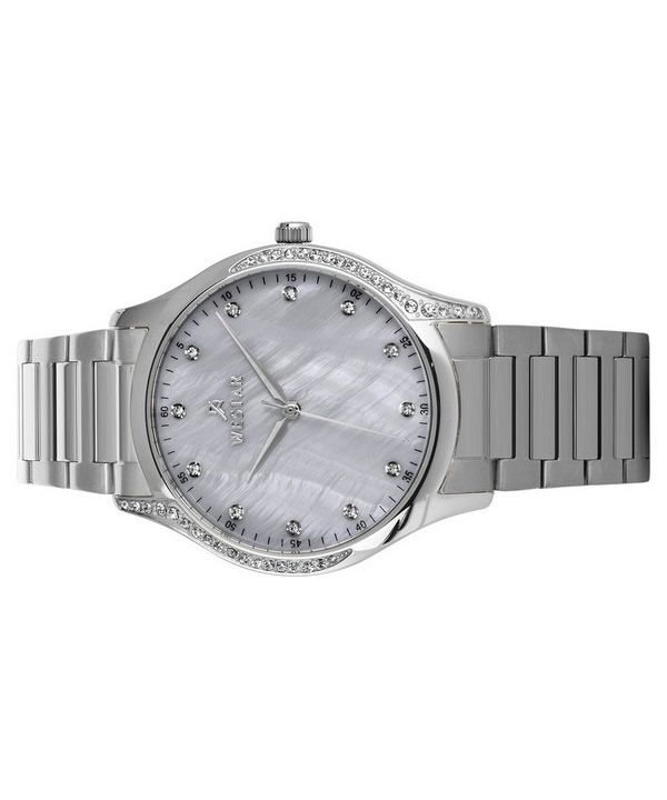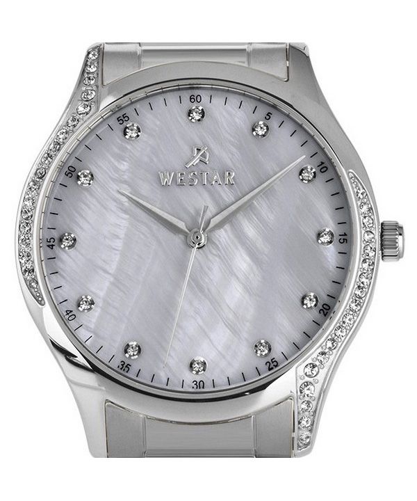 Westar Zing Crystal Accents Stainless Steel White Mother Of Pearl Dial Quartz 00127STN111 Women's Watch