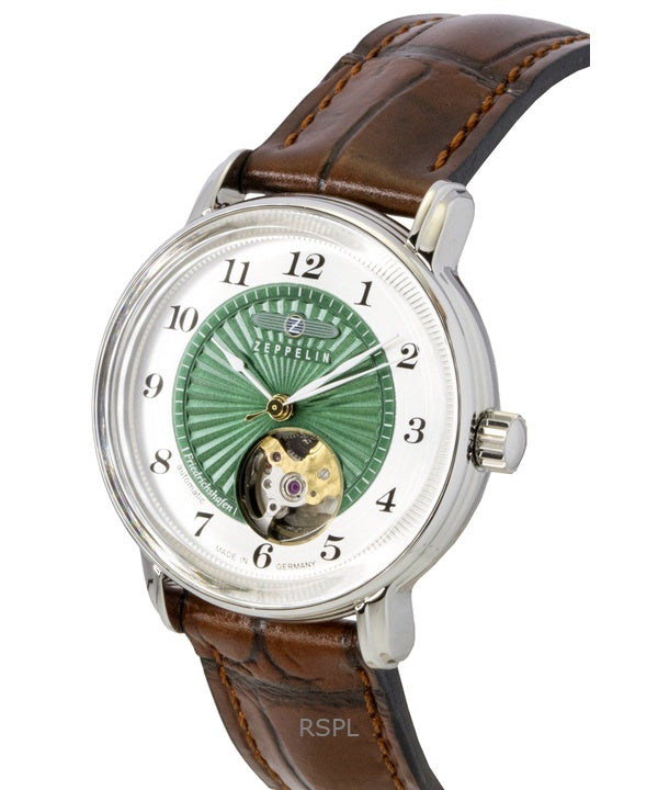 Zeppelin Friedrichshafen Leather Strap Open Heart Green Dial Automatic 85672 Women's Watch