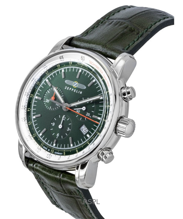 Zeppelin LZ 14 Marine Chronograph Leather Strap Green Dial Quartz 88884 Men's Watch