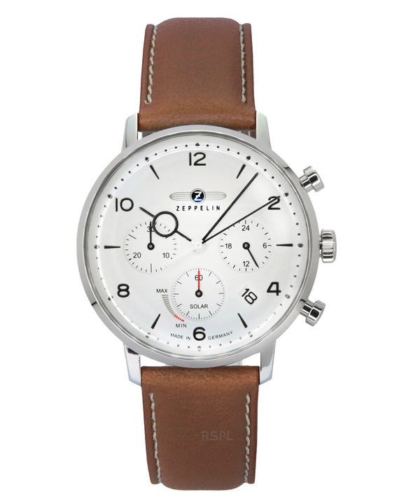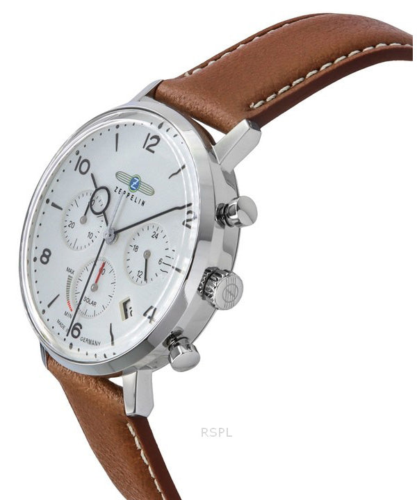 Zeppelin LZ129 Hindenburg Chronograph Brown Leather Strap Beige Dial Solar 80865N Men's Watch